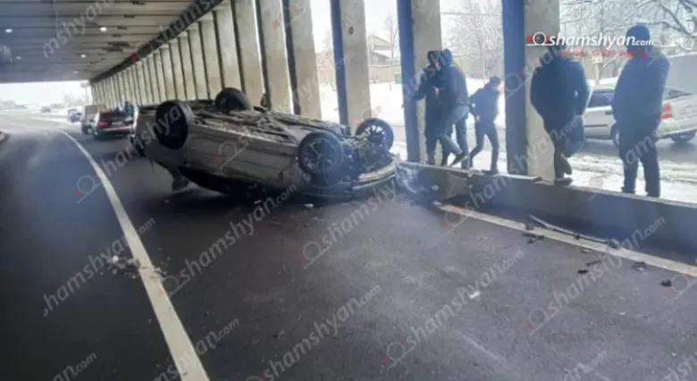 Արմավիր-Էջմիածին ճանապարհի թունելում «BMW»-ն բախվել է արգելապատնեշներին ու շրջվել․ Shamshyan