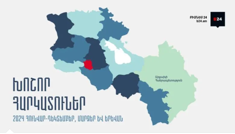 Մարզերում գրանցված ընկերությունների կողմից մուծվել է հարկերի 18.1% կամ մոտ 321.2 մլրդ ՀՀ դրամ հարկ, ինչը 2023թ. համադրելի ցուցանիշի համեմատ աճել է 15.7 մլրդ ՀՀ դրամով կամ 5.1%-ով։