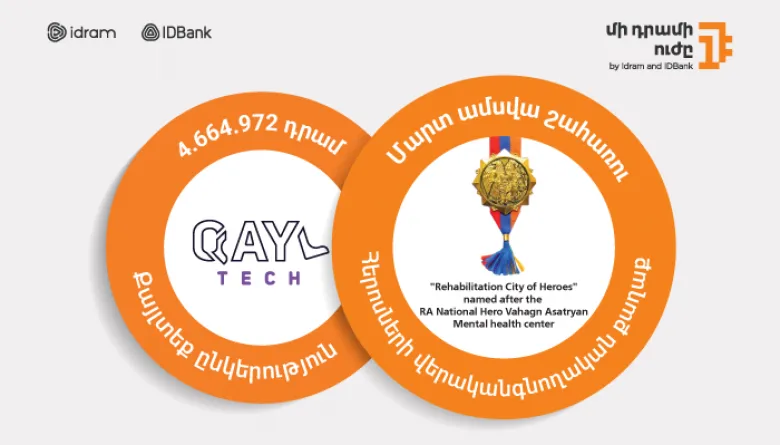 4.664.972 դրամ՝ ՔայլՏեք-ին․ «Մի դրամի ուժի» մարտ ամսվա շահառուն Հերոսների վերականգնողական քաղաքն է