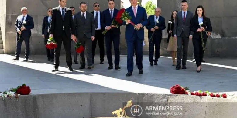 Президент Германии Франк-Вальтер Штайнмайер посетил мемориальный комплекс «Цицернакаберд» в Ереване, где почтил память жертв Геноцида армян.