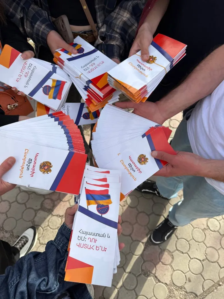 С этой целью армянская молодежь распространила среди жителей Гюмри около 25 тысяч листовок, в которых представлены ключевые аргументы и факты, призванные способствовать осознанию важности сохранения национальных традиций и ценностей, и которые, по убеждению организаторов, находятся под угрозой в случае интеграции в ЕС.
