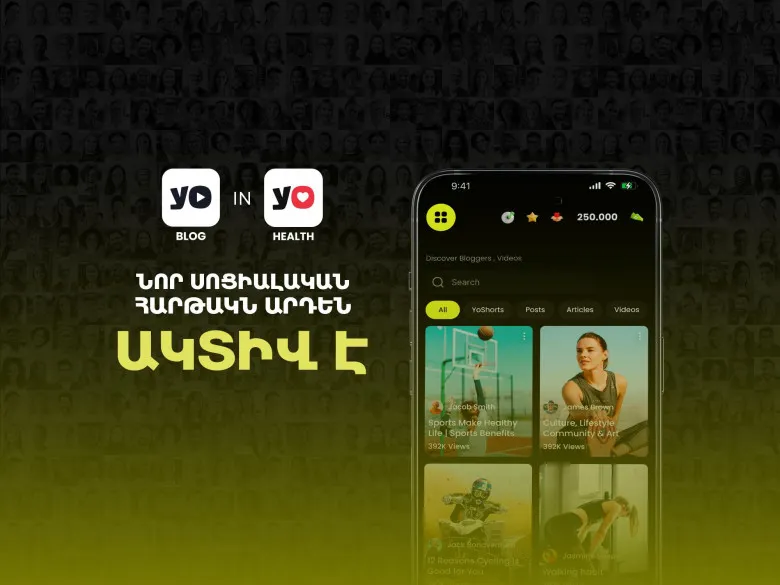 YoHealth-ն ակտիվ ապրելակերպը խթանող բջջային հավելված է, որը հաշվարկում է օգտատերերի քայլերը և դրամայնացնում դրանք։ Այն նաև նորարարական մարքեթինգ է, որը հնարավորություն է տալիս տնտեսվարողներին բարձրացնել իրենց արտադրանքի ճանաչելիությունը թվային նոր հարթակում։