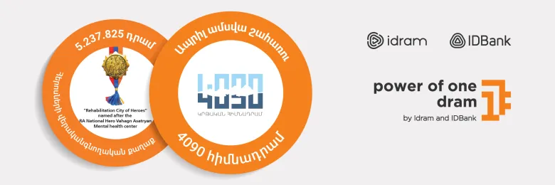 Նախորդ ամսվա ընթացքում «Մի դրամի ուժի» հավաքագրած 5․237․825 ՀՀ դրամն ուղղվեց «Հերոսների վերականգնողական քաղաք» հոգեկան առողջության կենտրոնին, որի նպատակն է ապահովել պատերազմի մասնակից անձանց և նրանց ընտանիքների անդամների հոգեկան և սոցիալական վերականգնումն ու բարելավումը։