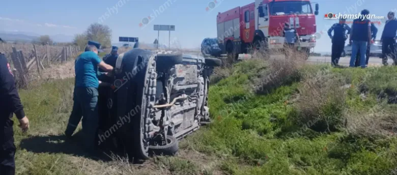 Արարատում «Toyota Vitz»-ը դուրս է եկել երթևեկելի գոտուց և կողաշրջված հայտնվել դաշտում