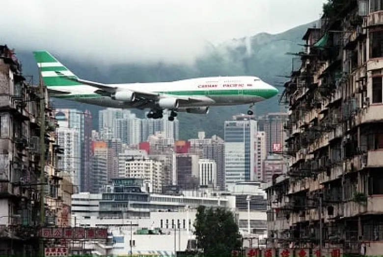 Речь идет о гонконгском аэропорте Кай Так, который когда-то славился своей сложной посадкой.