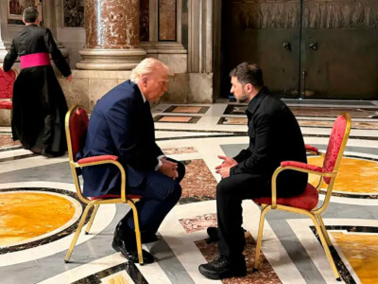 Лидеры столкнулись друг с другом по прибытии в Ватикан и нашли место для встречи наедине в соборе Святого Петра. Зеленский, по данным источников, сказал Трампу, что Путин не сдвинется с места, если президент США не окажет на него большего давления.