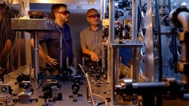 Внутри часов тысячи атомов охлаждаются до температуры, близкой к абсолютному нулю, с помощью лазеров, а затем подбрасываются вверх в виде фонтана.