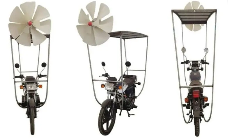 Մոտոցիկլետների հետ դա անհնար է անել տանիքի ու կոպոտի բացակայության պատճառով։ Այնուամենայնիվ, չինական ընկերություններից մեկը գտել է այս խնդրի լուծումը և մոտոցիլին նույնիսկ հողմատուրբին է ինտեգրել։