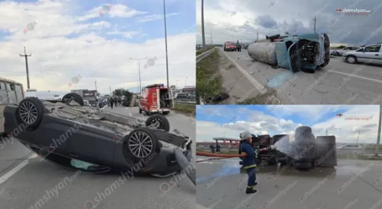 Ինչպես դեպքի վայրից հայտնում է ֆոտոլրագրող Գագիկ Շամշյանը, բախման հետևանքով «BMW»-ն գլխիվայր շրջվել է, իսկ հեղուկ գազ տեղափոխող բեռնատարը՝ կողաշրջվել: