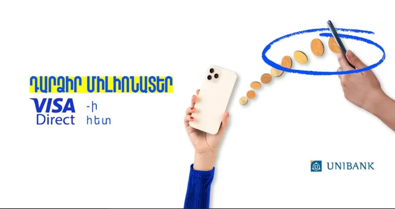 Visa Direct ծառայությունը Յունիբանկի հաճախորդներին հնարավորություն է տալիս արագ և հարմար ձևով իրենց Visa քարտից կատարել փոխանցում աշխարհի 60-ից ավելի երկրների բանկերի կողմից թողարկված Visa քարտերին: Փոխանցումն իրականացվում է հաշված րոպեների ընթացքում՝ հաճախորդին հարմար ցանկացած պահի: UNIMobile հավելվածով փոխանցում իրականացնելու համար հարկավոր է ընտրել «Փոխանցում այլ քարտին», նշել ստացողի քարտի համարը, փոխանցվող գումարի չափն ու արժույթը:
