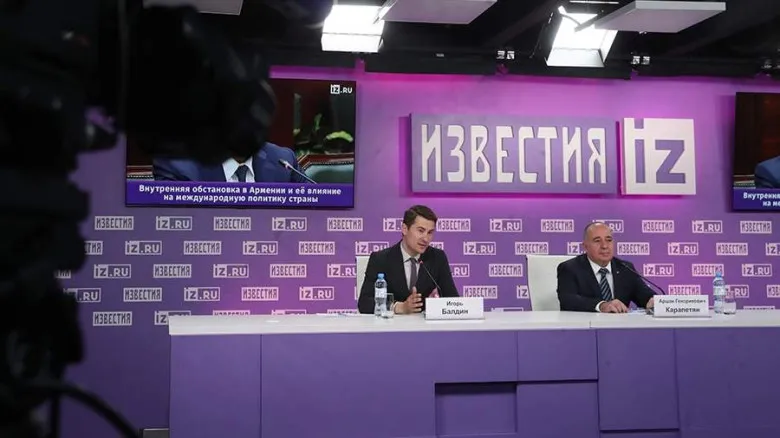Вчера в международном информационном центре «Известия» состоялась пресс-конференция лидера движения «Всеармянский фронт», бывшего министра обороны, генерал-майора Аршака Карапетяна, в которой в онлайн-режиме имели возможность принять участие также журналисты из Армении. В центре обсуждения были армяно-российские отношения, визит министра иностранных дел РФ в Армению, внутриполитическая ситуация в нашей стране. Карапетян отметил, что необходимо продолжать развивать отношения с Российской Федерацией, а не испортить их. «Договор между Арменией и Россией прекрасно работает против Турции. ОДКБ тоже прекрасно работает, ее нужно немного модернизировать по отношению к Азербайджану и другим нашим соседям и все», - сказал он.