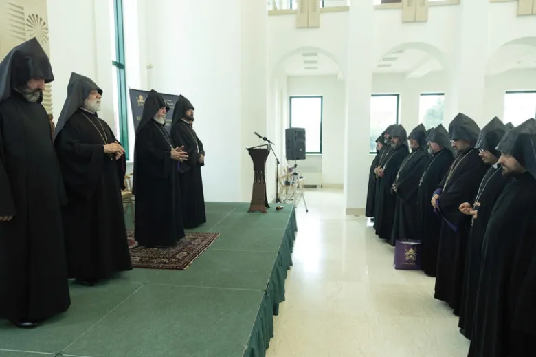 Վերջում Հայոց Հովվապետն իր բարձր գնահատանքը բերեց միաբանական համագումարի մասնակիցներին իրենց նվիրյալ և նախանձախնդիր սպասավորության համար՝ աղոթք բարձրացնելով առ Աստված, որ Տերը ապահով ու անվտանգ պահի հայրենի մեր երկիրը, իմաստություն շնորհի մեր ժողովրդին՝ համատեղ ջանքերով հասնելու խաղաղ և լուսավոր հանգրվաններին։