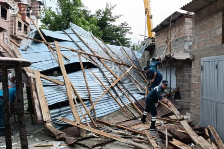 Ահազանգով դեպքի վայր մեկնած փրկարարներն իրականացրել են մոտ 500 ք.մ. մակերեսով տանիքի, ինչպես նաև երկու շենքի շուրջ 60մ երկաթե ճաղավանդակների ապամոնտաժման աշխատանքներ։ Փրկարարների օպերատիվ գործողությունների արդյունքում վերացվել է վթարավտանգ իրավիճակը։
