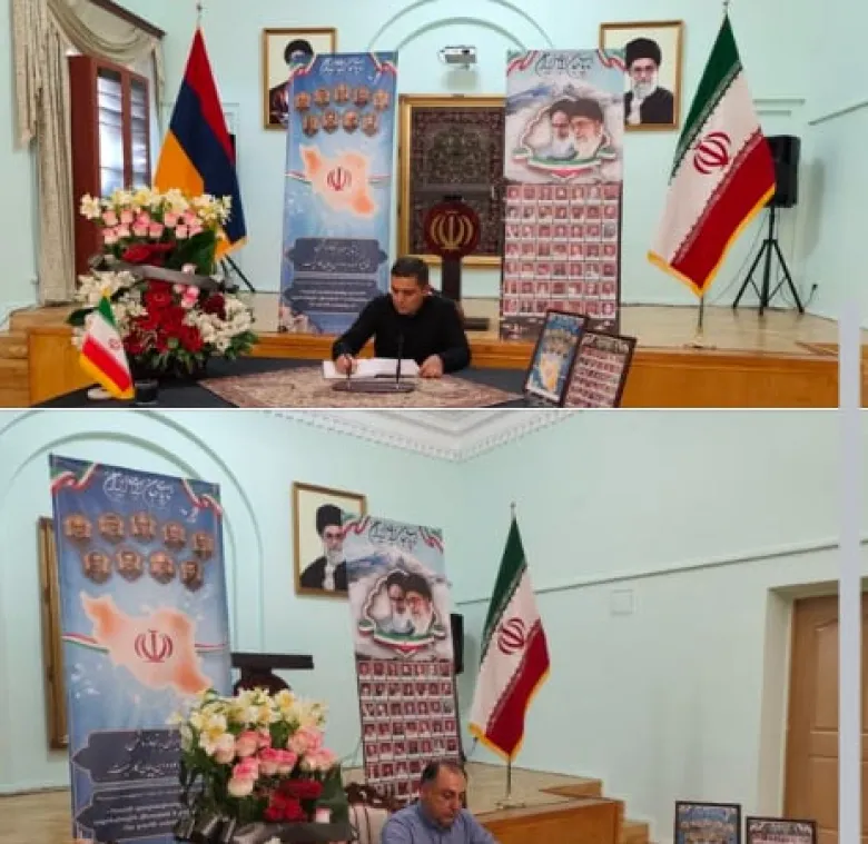 «ՀայաՔվե» միավորման վարչության անդամներ Մենուա Սողոմոնյանը և Ատոմ Մխիթարյանն այցելել են Երևանում Իրանի Իսլամական Հանրապետության դեսպանություն և գրառումներ կատարել վերջին պատերազմի զոհերի հիշատակին բացված սգո մատյանում: