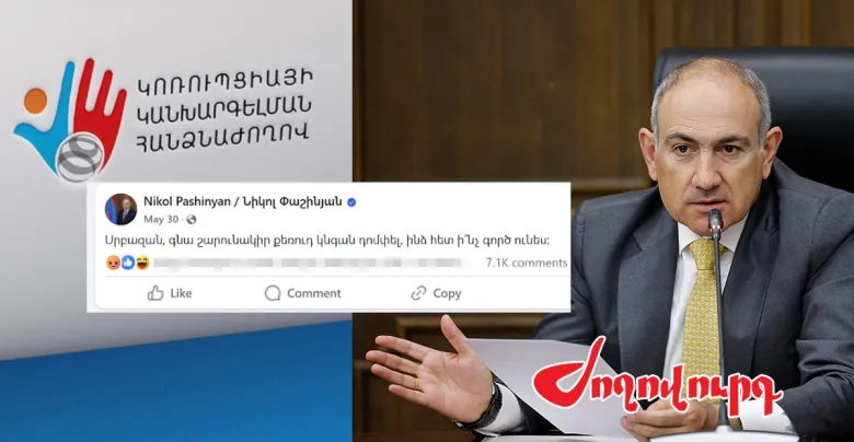 «Ժողովուրդ» օրաթերթը գրում է. «ArmԼur.am-ի տեղեկությունների համաձայն՝ ՀՀ վարչապետ Նիկոլ Փաշինյանը մայիսի 30-ին արված արտահայտության առիթով կոռուպցիայի կանխարգելման հանձնաժողովին ներկայացրել է պարզաբանում: Խոսքը հետեւյալ գրառման մասին է. «Սրբազան, գնա շարունակիր քեռուդ կնգան դոմփել, ինձ հետ ի՞նչ գործ ունես»: