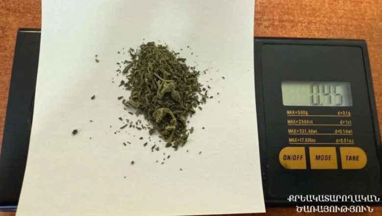 Հանձնուքում առկա տաբատի փոքր գրպանի միջից ծառայողները հայտնաբերել են մարիխուանա տեսակի թմրամիջոցին նմանվող, 0,45 գրամ քաշով, դեղնականաչավուն զանգված։