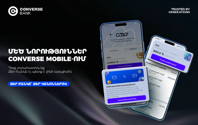 Կոնվերս Բանկը ներկայացնում է թարմացված՝ ավելի ընդգրկուն հնարավորություններով Converse Mobile հավելվածը