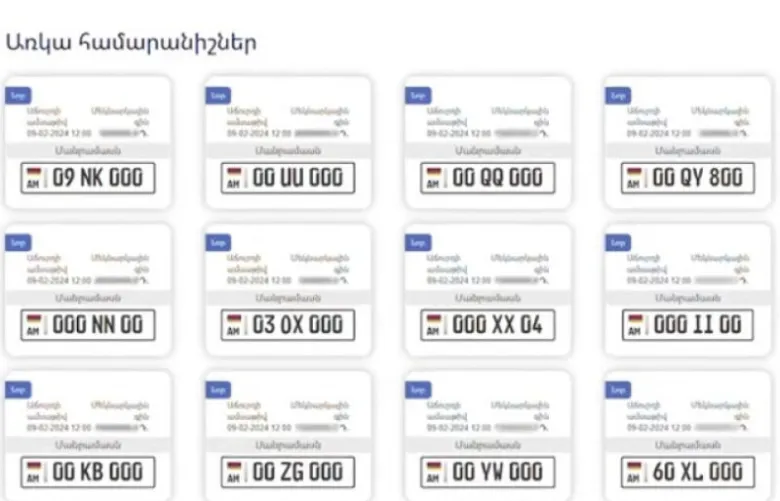 Auction.mia.gov.am հարթակի օգնությամբ քաղաքացիները կարող են ձեռք բերել տրանսպորտային միջոցների հաշվառման առանձնահատուկ պահանջարկ ունեցող համարանիշեր էլեկտրոնային աճուրդի միջոցով։