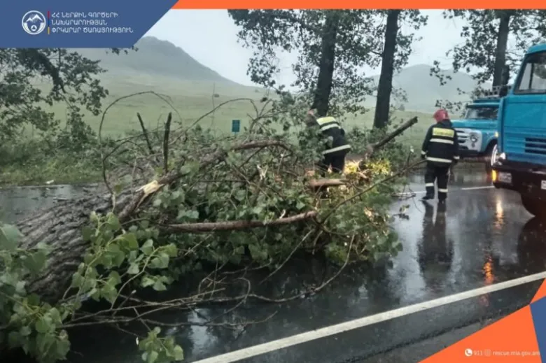 Փրկարարներն իրականացրել են տապալված ծառերի մասնատման և հեռացման, թուլացած թիթեղի ամրացման աշխատանքներ և կանխել երկաթե կառուցատարրերի ընկնելու վտանգը։