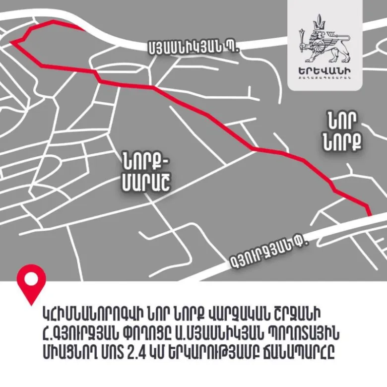 Կայացել է Նոր Նորք վարչական շրջանի Հ.Գյուրջյան փողոցը Ա.Մյասնիկյան պողոտային միացնող մոտ 2.4 կմ երկարությամբ ճանապարհի հիմնանորոգման նախագծի մրցույթը: