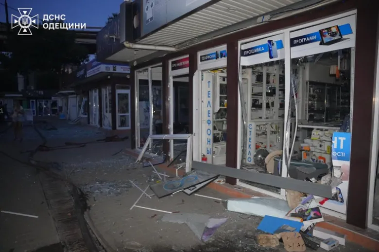 Օդեսայում գիշերային հարձակումից հետո վնասվել է ռադիոշուկան, էլեկտրոնիկայի և կենցաղային տեխնիկայի տասնյակ մանրածախ առևտրի կետեր հրդեհի հետևանքով ոչնչացվել են: Այրվել է նաև չգործող հանրակացարան: Այս մասին հայտնել են արտակարգ իրավիճակների ծառայությունից:
