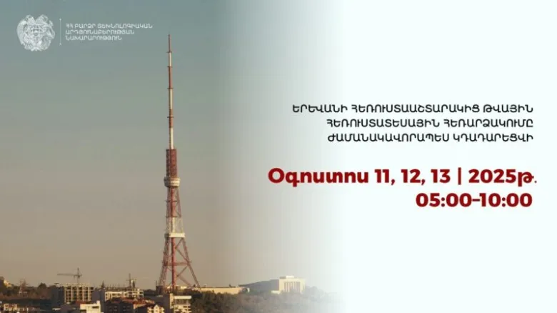 Երևանի հեռուստաաշտարակից թվային հեռուստատեսային հեռարձակումը ժամանակավորապես կդադարեցվի