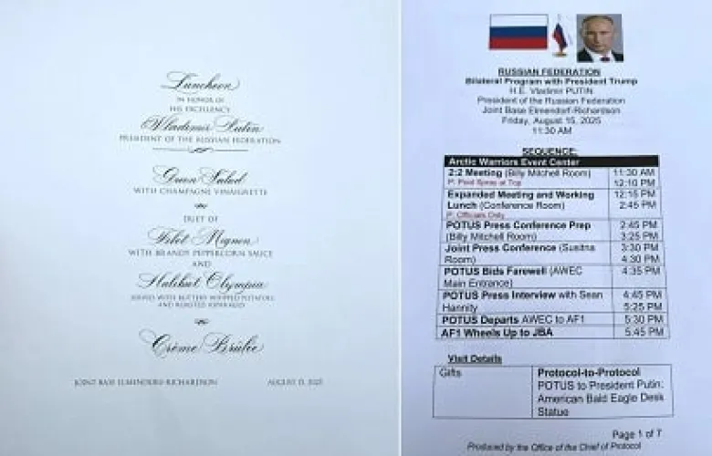 Документы содержали подробности саммита: точные места и время встреч, контактные номера сотрудников, а также описание официального ланча «в честь Его Превосходительства Владимира Путина». В материалах упоминался подарок — настольная статуэтка с изображением белоголового орлана.
