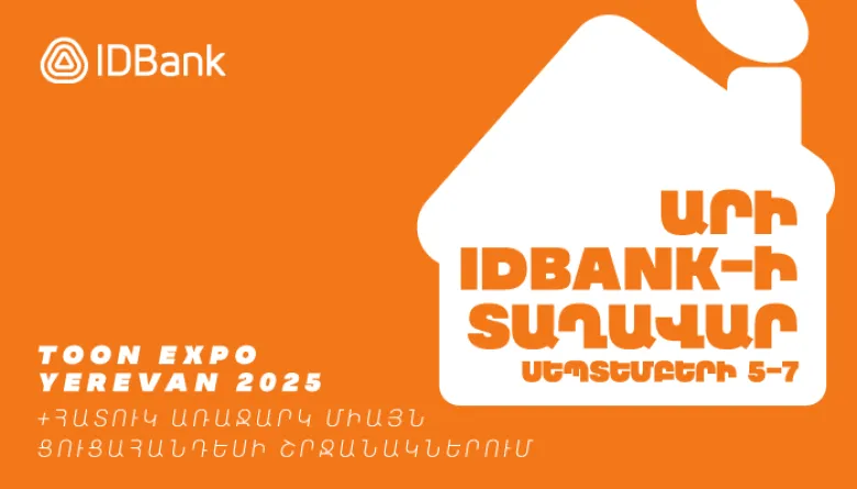 IDBank-ը սեպտեմբերի 5-7-ը կմասնակցի TOON EXPO YEREVAN 2025-ին՝ անշարժ գույքի և կառուցապատման ոլորտի միջազգային ամենամեծ և մասշտաբային ցուցահանդեսին տարածաշրջանում։