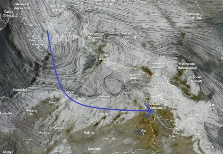 «Սև ծովից Հայաստանին մոտեցող ակտիվ ցիկլոնը արբանյակային լուսանկարի վրա»: