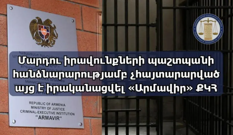 Մարդու իրավունքների պաշտպանի աշխատակազմի խոշտանգումների և վատ վերաբերմունքի կանխարգելման վարչության (կանխարգելման ազգային մեխանիզմ) ներկայացուցիչները, Պաշտպանի հանձնարարությամբ, 2025 թվականի սեպտեմբեր և հոկտեմբեր ամիսներին երկօրյա չհայտարարված մշտադիտարկման այց են իրականացրել Արդարադատության նախարարության «Արմավիր» քրեակատարողական հիմնարկ: Այս մասին տեղեկացնում են ՄԻՊ աշխատակազմից։