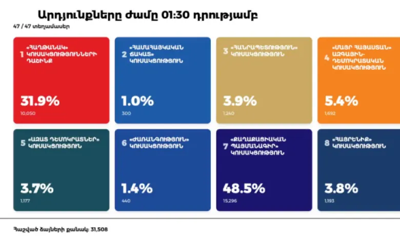 «Պառլամենտարիզմի զարգացման միջազգային կենտրոն»-ը ներկայացրել է ամփոփ տվյալները՝ բոլոր 47 ընտրատեղամասերից։