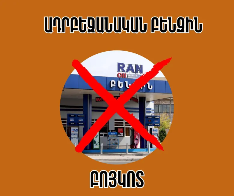 Բոյկոտենք RAN OIL բենզալցակայանները։ Թույլ չտանք, որ մեր գումարով գնված ադրբեջանական բենզինը փոխակերպվի մեր դեմ ուղղված հրանոթների: