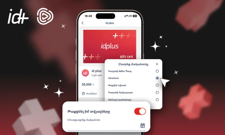 С idplus вы можете быть уверены, что ваш подарок будет действительно ценным и желанным для получателя. Самое главное — он сможет самостоятельно выбрать подарок и оплатить его цифровой подарочной картой везде, где доступна оплата через Idram QR в приложении Idram&IDBank, то есть в более чем 25 000 торговых точках по всей Армении.