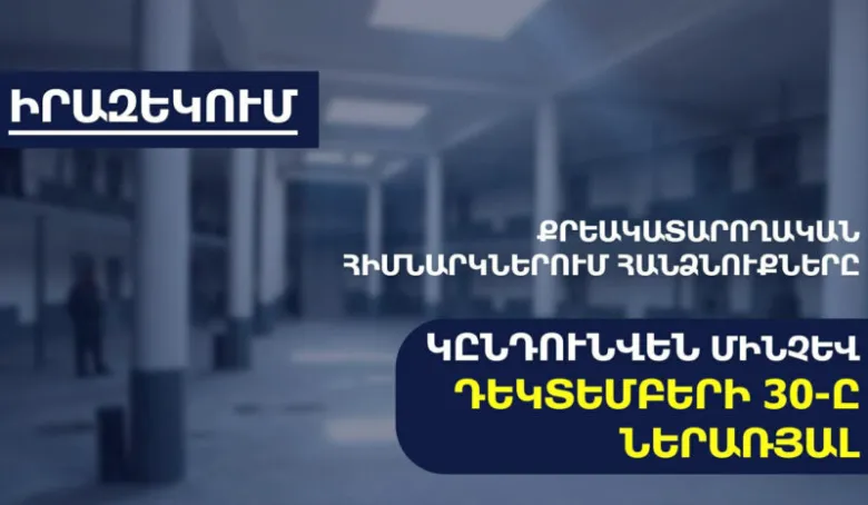 Հայաստանի Հանրապետության արդարադատության նախարարության քրեակատարողական ծառայությունը տեղեկացնում է, որ քրեակատարողական հիմնարկներում կալանավորված անձանց և դատապարտյալների համար հանձնուքները կընդունվեն մինչև 2025 թվականի դեկտեմբերի 30-ը ներառյալ՝ ժամը 17-00-ը։