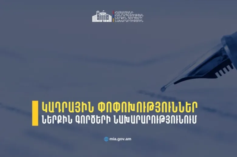 Ներքին գործերի նախարար Արփինե Սարգսյանի հրամաններով նոյեմբեր-հունվար ամիսներին կատարվել են կադրային հետևյալ փոփոխությունները․