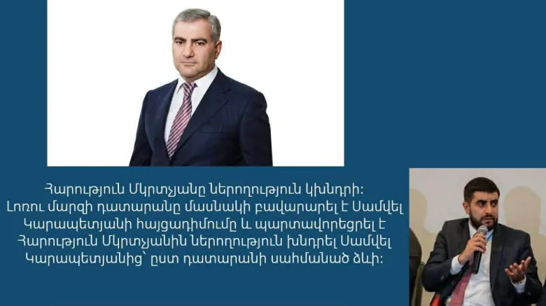 Լոռու մարզի դատարանը մասնակի բավարարել է մեր կողմից ներկայացված հայցադիմումը և պարտավորեցրել է Հարություն Մկրտչյանին վիրավորական արտահայտությունների համար ներողություն խնդրել Սամվել Կարապետյանից։ Դատարանն արձանագրել է, որ Հարություն Մկրտչյանի ֆեյսբուքյան հրապարակման մեջ տեղ են գտել վիրավորանք պարունակող արտահայտություններ, ինչի համար նա պետք է հրապարակայնորեն ներողություն խնդրի։ Վճիռն օրինական ուժի մեջ կմտնի մեկ ամսից։ Այս մասին հայտնում է փաստաբան Վարդան Ալոյանը։