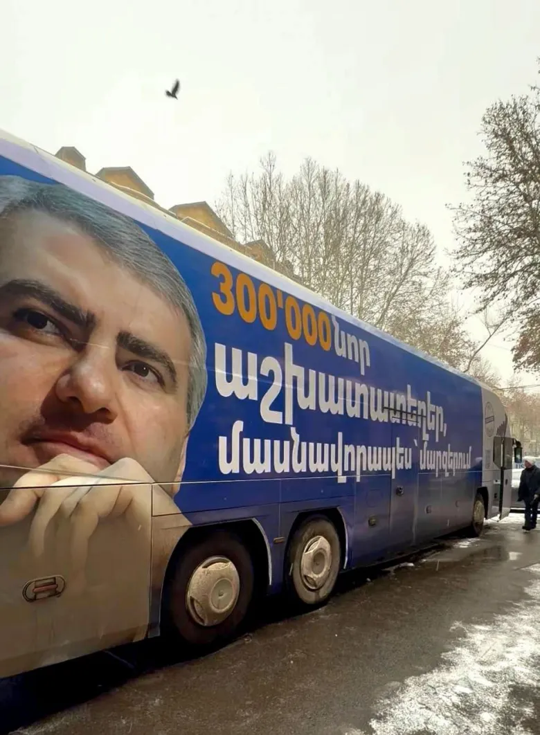 Այսօր տրվել է արշավի մեկնարկը։ Սամվել Կարապետյանի գլխավորած ուժի ներկայացուցիչները մեծ ավտոբուսով շրջելու են Հայաստանով ու ներկայցնեն տնտեսական փոփոխությունների ծրագիրը։ Ավտոբուսի վրա պատկերված են Սամվել Կարապետյանի լուսանկարն ու տնտեսական ծրագրի կետերը։ Դրանցից առաջինը 300 հազար նոր աշխատատեղերի ստեղծումն է` հատկապես մարզերում։