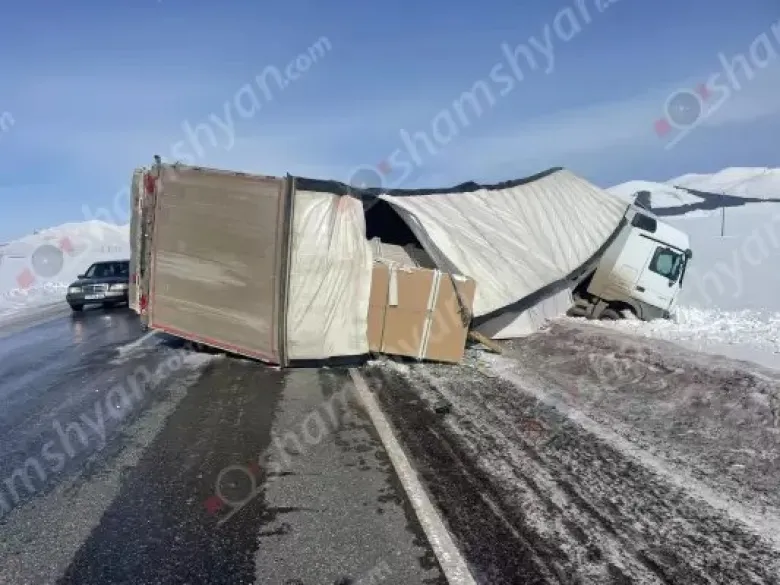 Խոշոր ավտովթար՝ Արագածոտնի մարզում. Վրաստանի քաղաքացին բեռնատարով կողաշրջվել է