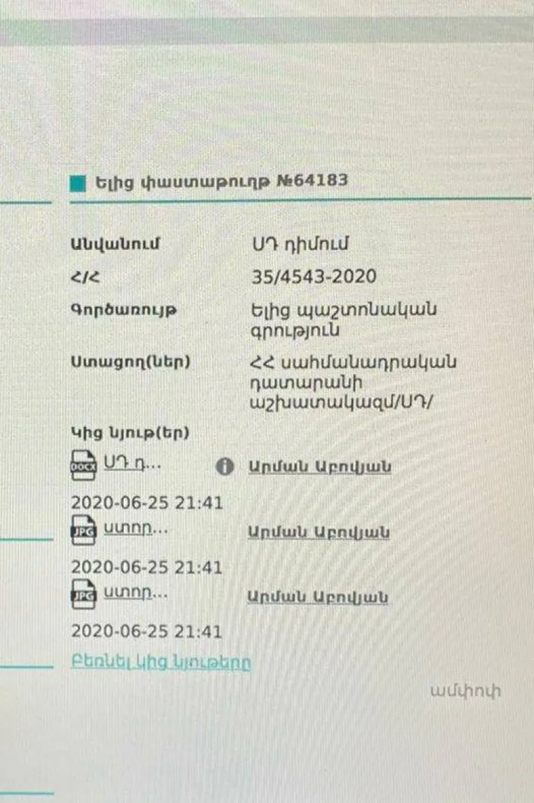 Արման Աբովյանի տեղեկությունը Սահմանադրական դատարանին ուղղված դիմումի վերաբերյալ