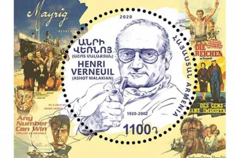 1948 թ-ից աշխատել է կինոյում. աշխարհահռչակ դերասանների մասնակցությամբ ստեղծել է 40-ից ավելի կինոնկարներ («Արգելված պտուղ» (1952 թ.), «Մաքսիմ» (1958 թ.), «Նախագահը» (1961 թ.) և այլն): Ժամանակակից կինոարվեստի լավագույն օրինակներից է Անրի Վեռնոյի «Մայրիկ» կենսագրական ֆիլմը, որը նկարահանվել է 1991 թ. և ներկայացնում է Հայոց ցեղասպանությունից մազապուրծ եղած և Ֆրանսիա գաղթած հայ ընտանիքի պատմություն: Թողարկման օրը` 01 սեպտեմբերի 2020թ. Դիզայնը՝ Վահագն Մկրտչյան Տպարանը` Cartor, Ֆրանսիա Նամականիշի տրամագիծը` 38,0 մմ Գեղաթերթիկի չափսերը` 60,0 x 45,0 մմ Տպաքանակը՝ 40 000 h.