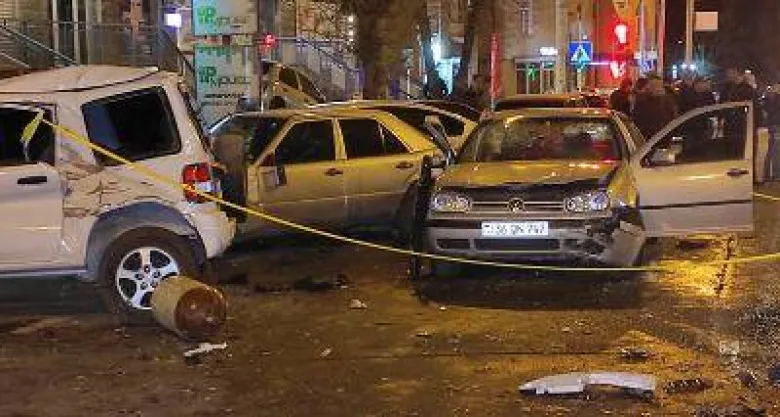 Պարզվել է, որ Սայաթ-Նովայի փողոցի թիվ 9ա շենքի մոտակայքում բախվել են «Infiniti» (վարորդ` Նիկոլայ Խ․, ծնված 1985 թ.), «Volkswagen Golf» (վարորդ՝ Սերյոժա Գ․, ծնված 1998 թ.) և «Mercedes-Benz C» (վարորդ՝ Արթուր Հ․, ծնված 1981 թ.) մակնիշների ավտոմեքենաները, այնուհետև բախվել են կայանված «Nissan Teana» (վարորդ՝ Հրաչ Ո․, ծնված 1973 թ.), «Mitsubishi Pajero» (վարորդ՝ Հայկ Գ․, ծնված 1996 թ.), «Mercedes-Benz C» (վարորդ՝ Կարապետ Բ․, ծնված 1991 թ.) և «Mercedes-Benz E» (վարորդ՝ Գուրգեն Բ․, ծնված 1992 թ.) մակնիշների ավտոմեքենաներին: