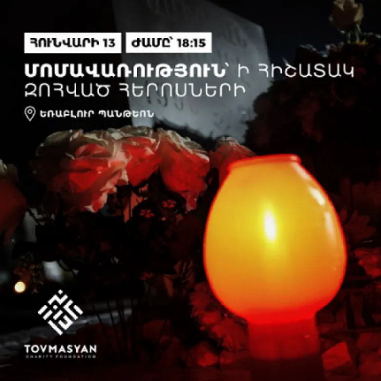 Հունվարի 13-ին, ժամը 18:15-ին «Թովմասյան» բարեգործական հիմնադրամի նախաձեռնությամբ՝ «Եռաբլուր» զինվորական պանթեոնում տեղի կունենա մոմավառություն՝ ի հիշատակ Ադրբեջանի կողմից Արցախի նկատմամբ սանձազերծված պատերազմի հետևանքով առաջնագծում զոհված մեր հերոսների։