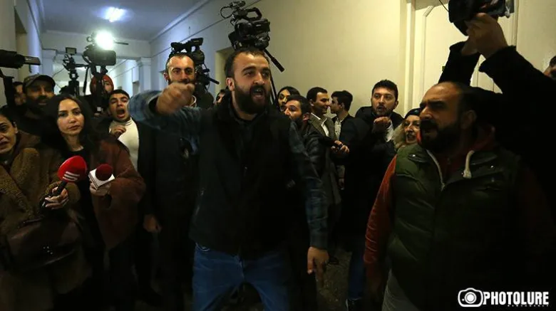 Граждане, требующие отставки Никола Пашиняна, сейчас находятся в ЕГУ, переходят из класса в класс, призывая студентов присоединиться к ним.