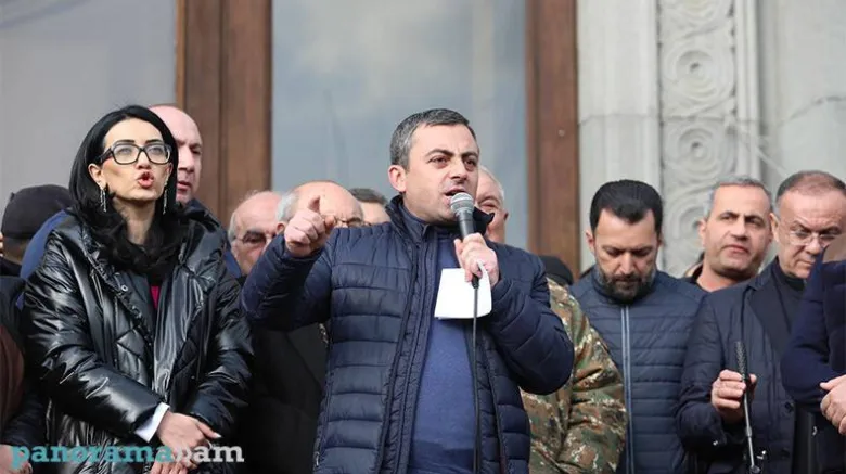 «Мы собрались здесь сегодня, чтобы встать рядом с армянской армией. Давайте все покажем отважным генералам и офицерам нашей армии, что армянский народ на их стороне. Армения без Никола... Уважаемые генералы, офицеры армянской армии, армянский народ рядом с вами, в вашем распоряжении. Сегодня армянская армия еще раз доказала, что она рядом с народом. Мы еще раз призываем нашу армию не спускать глаз с наших границ, оставаться на своих местах, стоять твердо и непоколебимо», - сказал он, а затем призвал МИД РА выступить с заявлением и осудить деятельность этого «безумца».