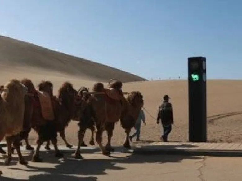 В Китае запустили первый в мире светофор для верблюдов. Светофор был установлен на горе Минша и у источника Полумесяца в городе Дуньхуан, сообщает NYP.