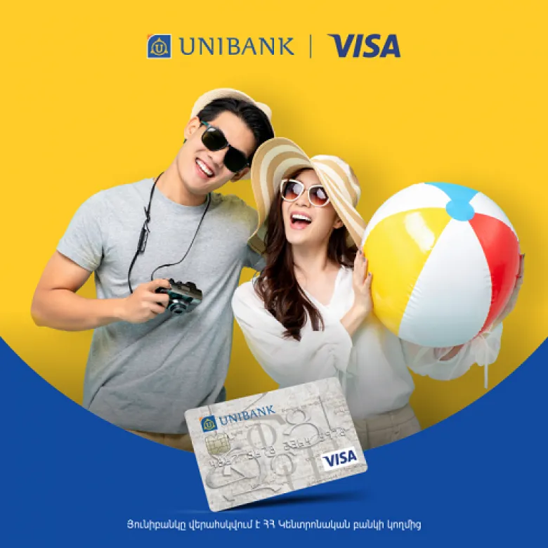 Юнибанк совместно с Visa запустили новую кампанию, в рамках которой держателям кредитных карт Visa NON Cash предоставляется возможность выиграть двухдневную путевку на две персоны в один из комфортабельных отелей Армении. Для участия в кампании «Отпуск вместе с Юнибанком и Visa» нужно совершить безналичные платежи картой Visa NON Cash в пунктах торговли и обслуживания в Армении — магазинах, кафе, ресторанах, аптеках, отелях и т. д. Eжемесячно будут определены два победителя, совершившие платежи на наибольшую сумму. Акция продлится до 31 декабря 2021 года.