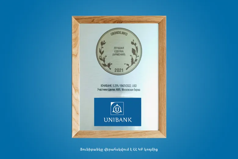 Սանկտ Պետերբուրգում տեղի ունեցած ԱՊՀ և բալթյան երկրների 17-րդ համաժողովի Cbonds Awards CIS — 2021 մրցանակաբաշխությանը «Յունիբանկ» ԲԲԸ-ի պարտատոմսերի փոխցուցակումը ճանաչվել է Հայաստանի լավագույն գործարք: Յունիբանկի դոլարային պարտատոմսերը փոխցուցակվել են Մոսկվայի բորսայում 2020թ․-ին։ Փոխցուցակման գործընթացը տեղի է ունեցել AMX - Հայաստանի ֆոնդային բորսայի և Մոսկվայի բորսայի (MOEX) համագործակցության և աջակցության շնորհիվ։