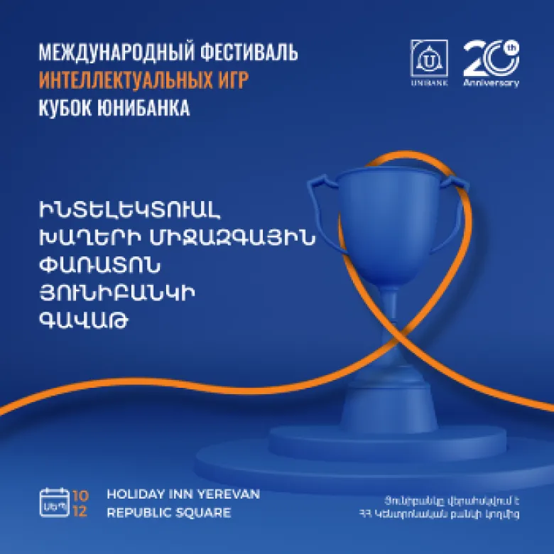 С 10 по 12 сентября 2021 года в Ереване состоится международный фестиваль интеллектуальных игр «Кубок Юнибанка». Мероприятие приурочено к 20-летию ОАО «Юнибанк», выступающего генеральным спонсором события.