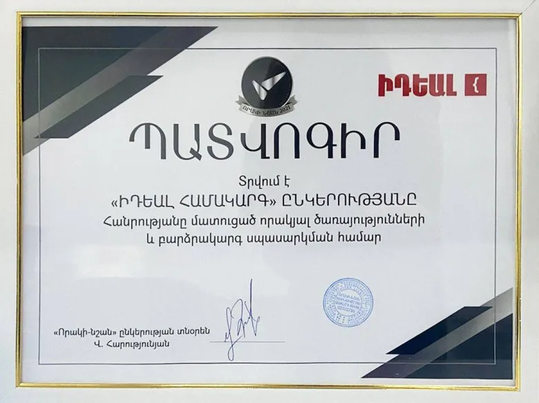 «ԻԴԵԱԼ Համակարգ»-ն արժանացել է «Որակի նշան 2021» պարգևատրման.