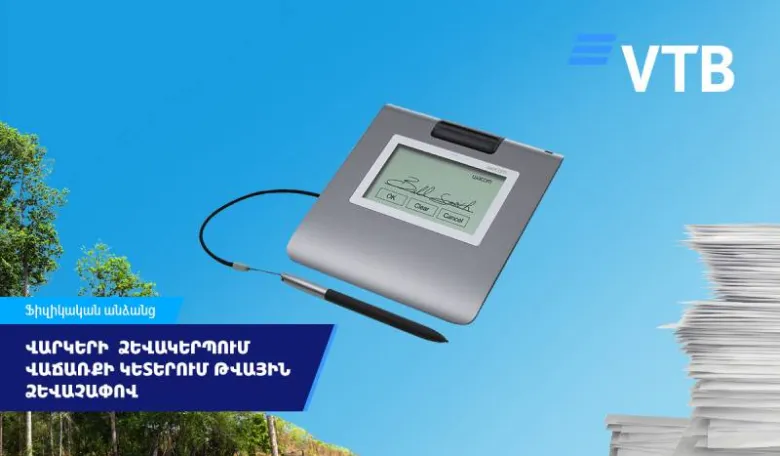 ՎՏԲ-Հայաստան Բանկը վաճառակետերում ապառիկ վարկեր տրամադրելիս հաճախորդներին հնարավորություն է ընձեռում ստորագրել փաստաթղթերը թվային ձևաչափով: Տեխնոլոգիան կարագացնի վարկերի ձևակերպումը միջինը 30%-ով։